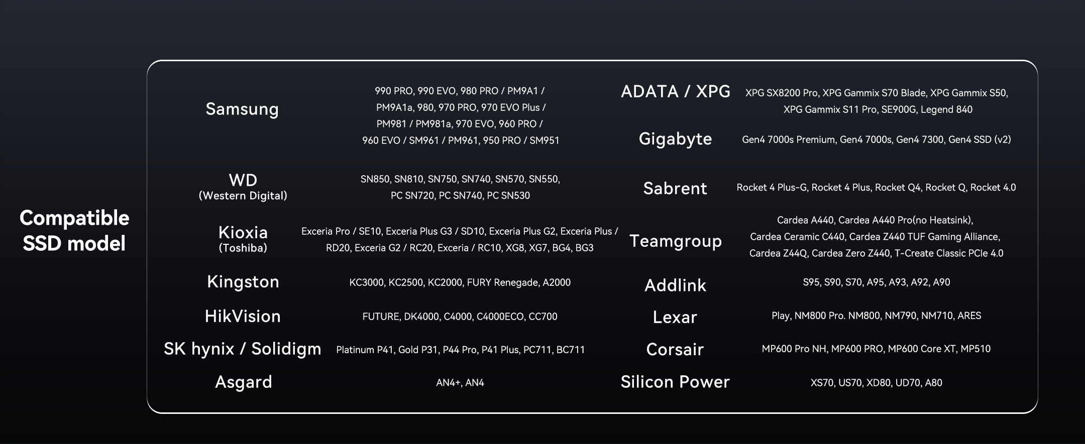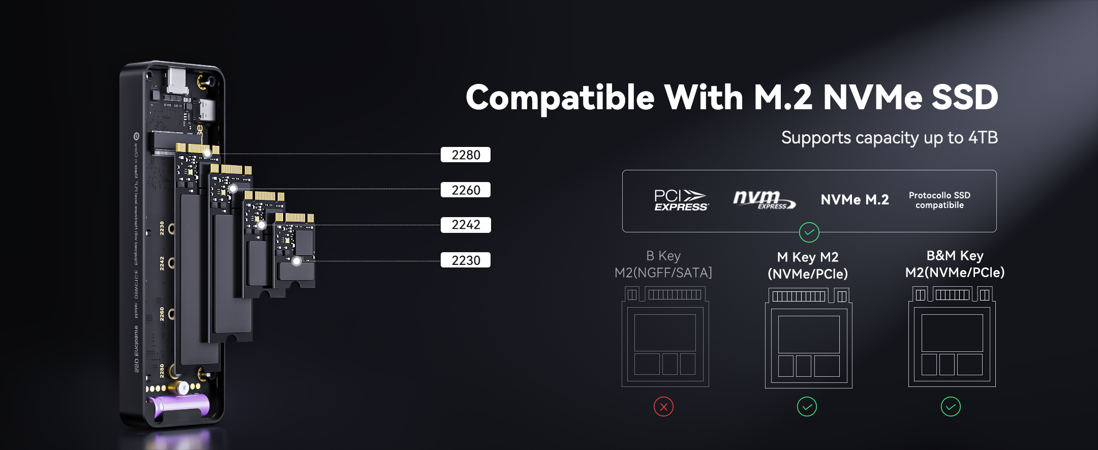 - Supports 2230/2242/2260/2280 M.2 SSD